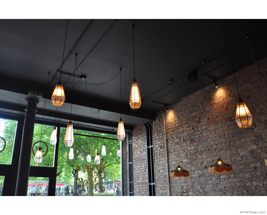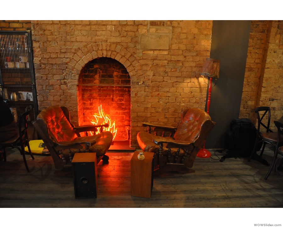 Like the original 200 Degrees in Flying Horse Walk in Nottingham, albeit in a slightly more modern building, this is long and thin. While there’s more natural light, like Nottingham, the lighting can be best described as “subdued” at the back. There are many more similarities: the wooden floors, exposed-brick walls, wooden panelling, bare light bulbs and neon fireplace decorations. There’s even an on-site barista school, although this one is in the basement rather than upstairs.