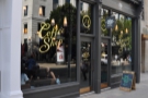 On the right is the large counter, food first, then the till, and finally the coffee, centred on the magnificent Black Eagle espresso machine. A disabled toilet follows, which is opposite the fireplaces, and then, right at the back, steps lead to the basement, housing barista school and toilets.