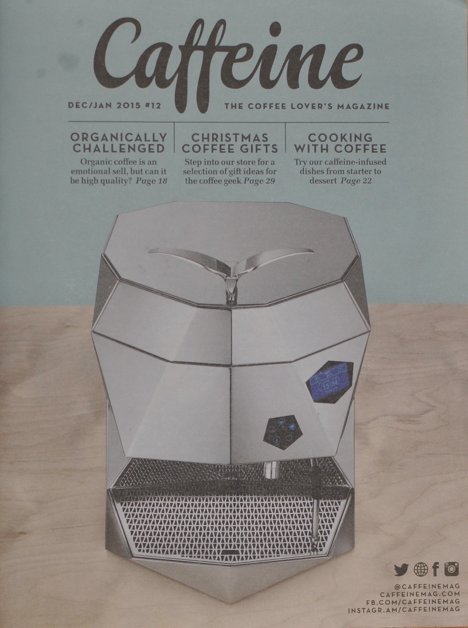 Thumbnail – Caffeine Magazine 12 (DSC_6922) Published December 12, 2014 at 1589 × 2131 in Caffeine Magazine The front cover of Issue 12 of Caffeine Magazine with the very angular Victoria Arduino Theresia espresso machine