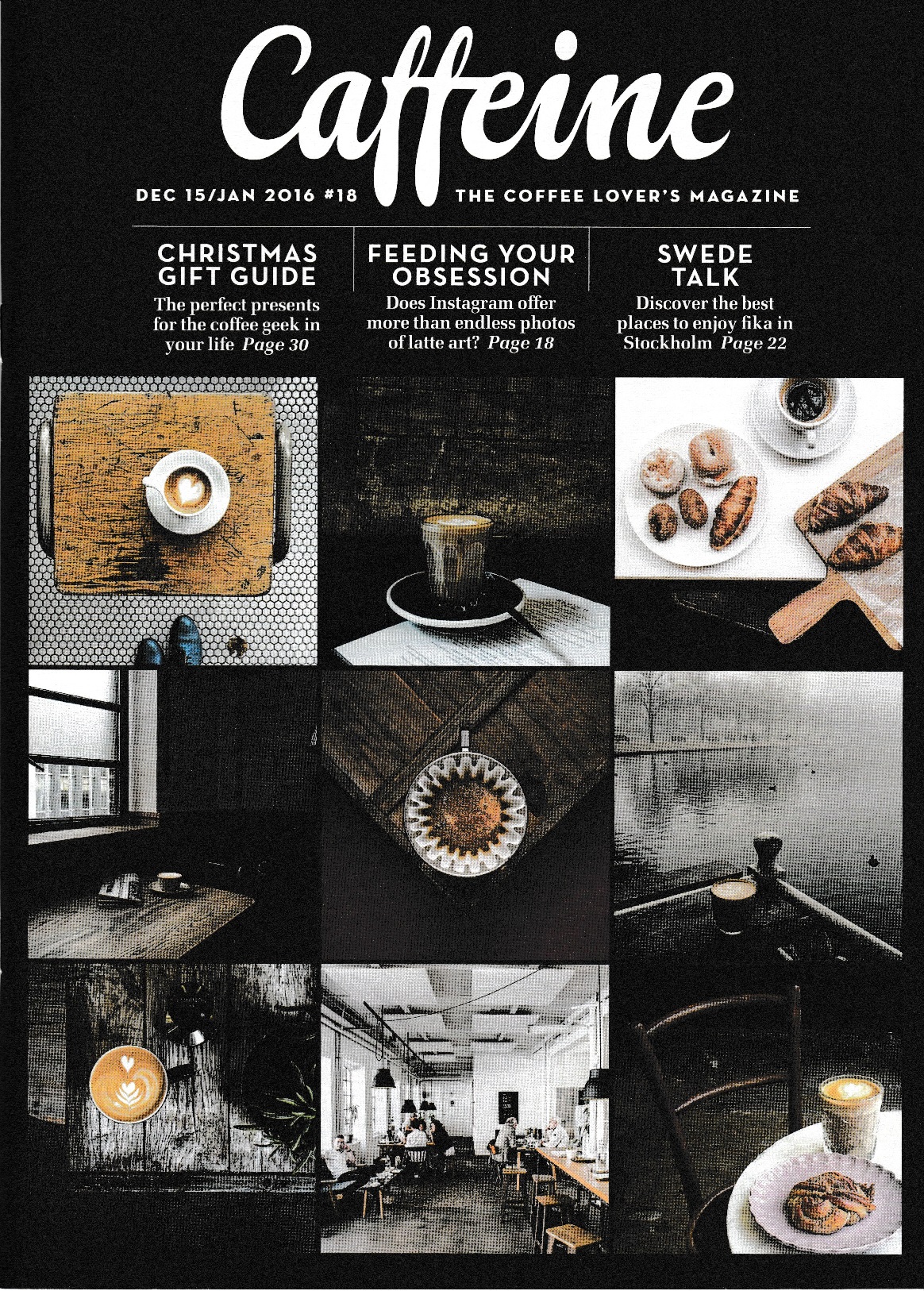 The front cover of Issue 18 of Caffeine Magazine showing a grid of nine photos from the magazine’s Instagram feed as part of a feature on the impact of social media on the speciality coffee industry.