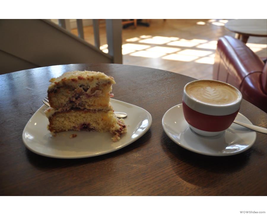 It helps that the coffee is good, while the cakes and food, all baked/made on the premises, are excellent. I liked it so much that I visited twice, once with a friend for Sunday brunch (which was excellent) and then again one afternoon the following week for a more extended visit.