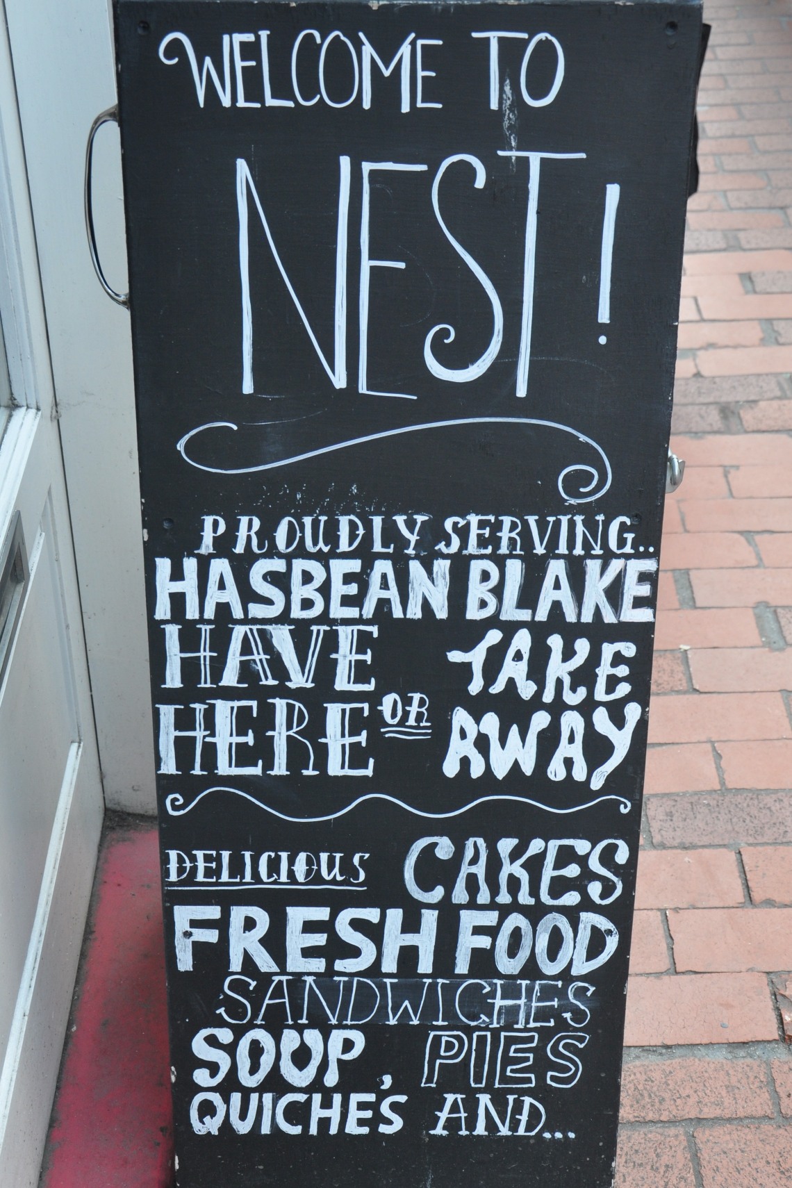 Thumbnail – Nest (DSC_6200) Published November 28, 2013 at 1140 × 1710 in Nest The A-board at Nest on Kensington Gardens, promising Has Bean’s Blake Blend, delicious cakes and fresh food.