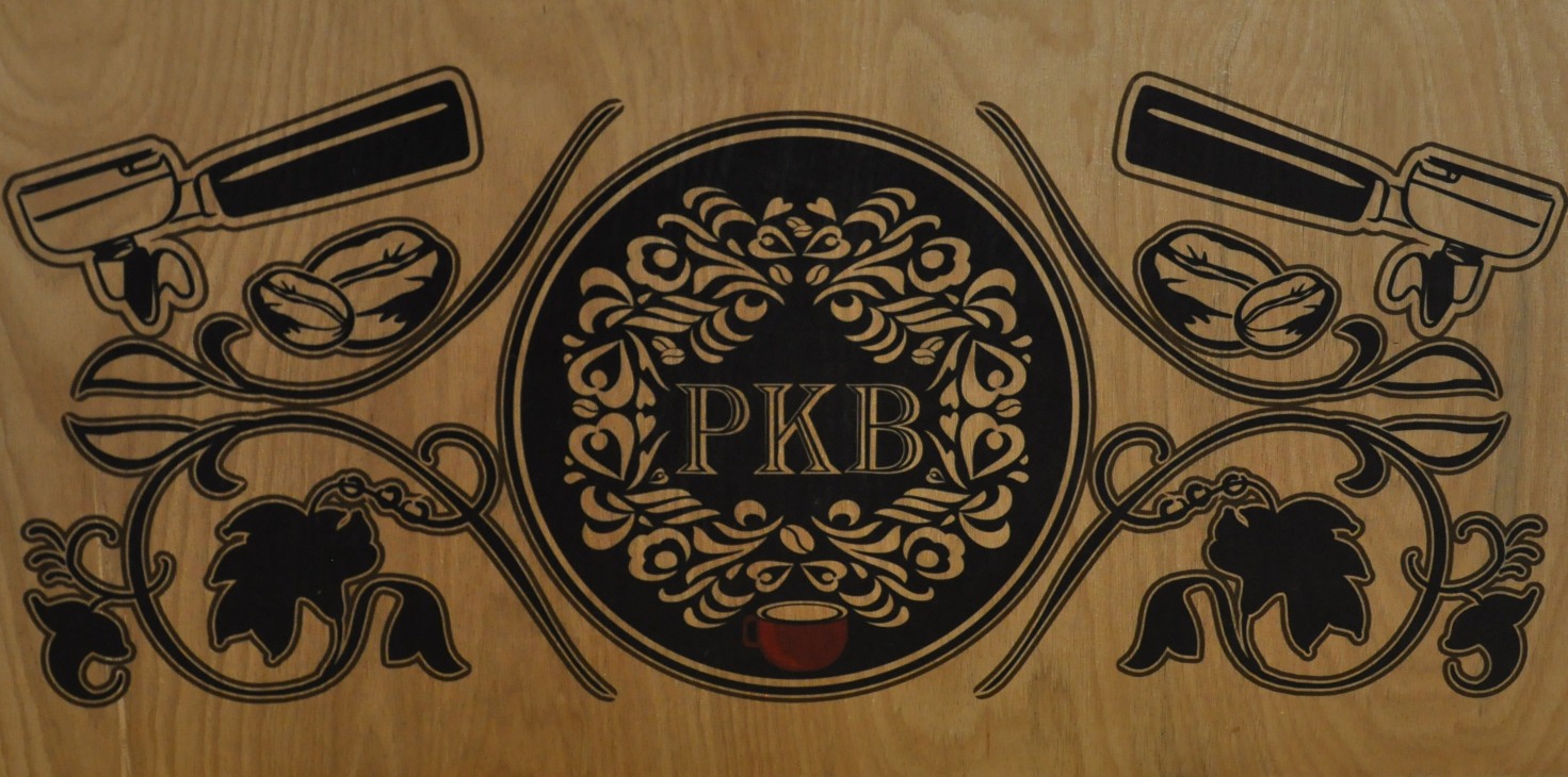 Thumbnail – Pot Kettle Black (DSC_5577) Published November 3, 2014 at 1471 × 730 in Pot Kettle Black The Pot Kettle Black logo, the letters PKB in a black circle over a red espresso cup, flanked by coffee beans and a pair of portafilters.