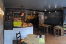 In a gap in the back wall to the right of the counter, a step leads up to the back room. The bare brick and wood theme continues here, although a lack of windows make it dark in a cosy, snug sort of way. There’s not much seating, just a four-person table directly in front of you and, to the right, a long table with two wooden benches/pews. A two-person bar, which had been colonised by the staff while I was there, is on the left by the step. Finally, there’s an enticing flight of stairs down to (I’m guessing) an office and kitchen, but they’re sadly staff only.