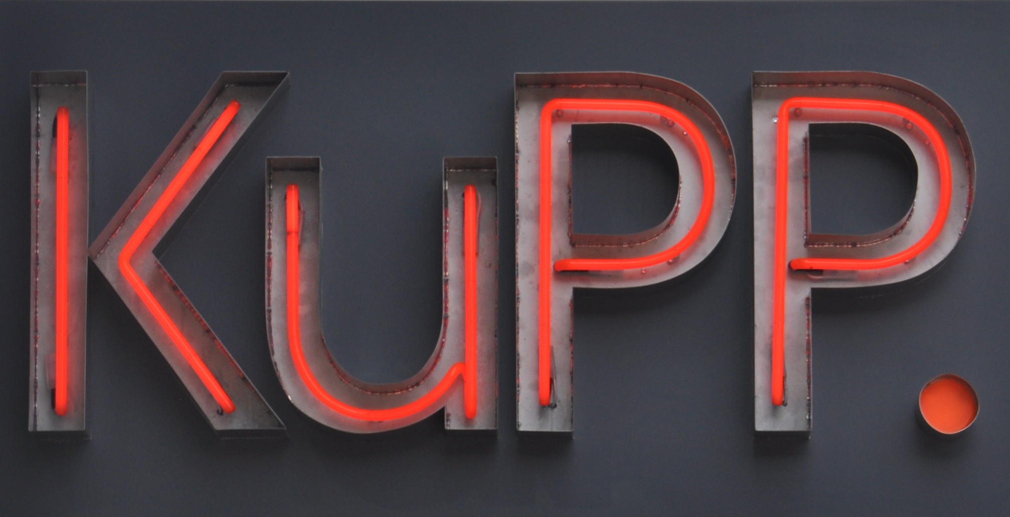 The KuPP logo in red neon.