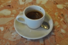 Anthony’s Italian Coffee House is an unpretentious place, with a simple, pleasing layout that fits in well with the neighbourhood. The sidewalk is slightly raised from the street and each of the shops in the row has a scaffolding-like canopy constructed out front, which means that you can walk from shop to shop when it’s raining without getting wet (just as well since it poured down the day I was there). It also provides shelter for the pair of tables with distinctive yellow chairs that sit on the far edge of the side walk opposite Anthony’s. A wooden platform, projecting into the street, houses four more tables, this time with more sober, black-mesh chairs. However, these lack protection from the elements, sitting, as they do, outside the reach of the canopy.
