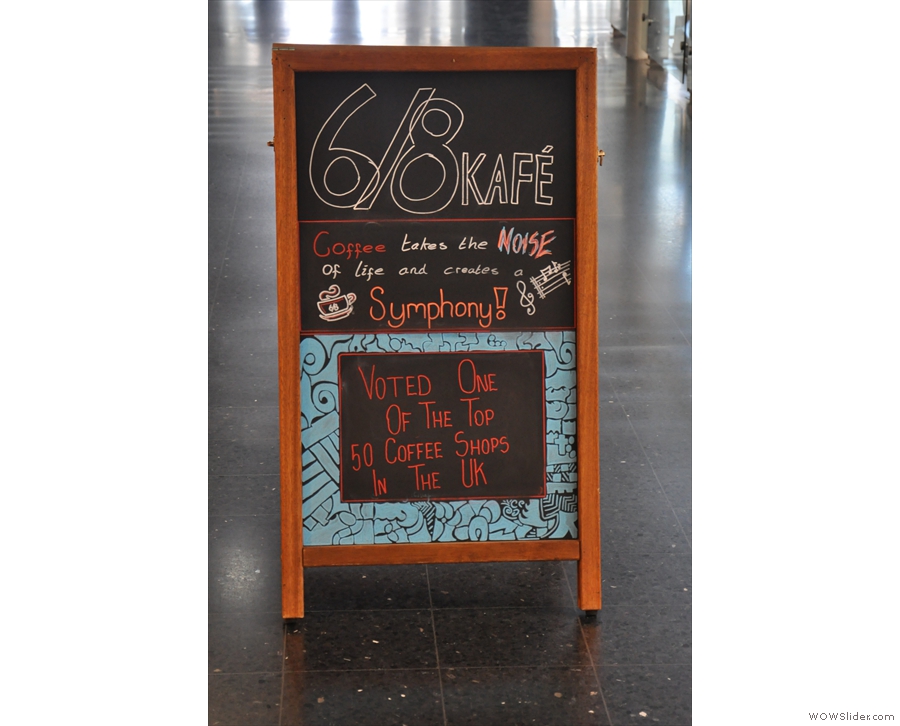 I’d actually given up and was coming down disconsolately to the ground floor when I looked out of the lift door on the second floor and there it was, right in front of me! Several frantic button-presses later and I reached my destination! If, unlike me, you actually want to find 6/8 Kafé rather than wander around aimlessly, I suggest entering from Jennens Road, where you come straight in on the second floor. Follow the signs for Thinktank, and, before you get there, on your right, is 6/8 Kafé. It’s really quite hard to miss…