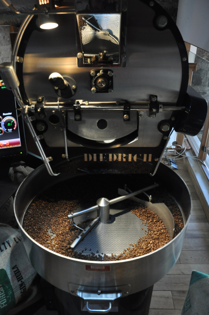 Thumbnail – Avenue Coffee Roasting Co (DSC_1956) Published January 15, 2016 at 671 × 1011 in Avenue Coffee Roasting Co Avenue Coffee’s Diedrich roaster, with a batch of freshly-roasted beans in the cooling pan.