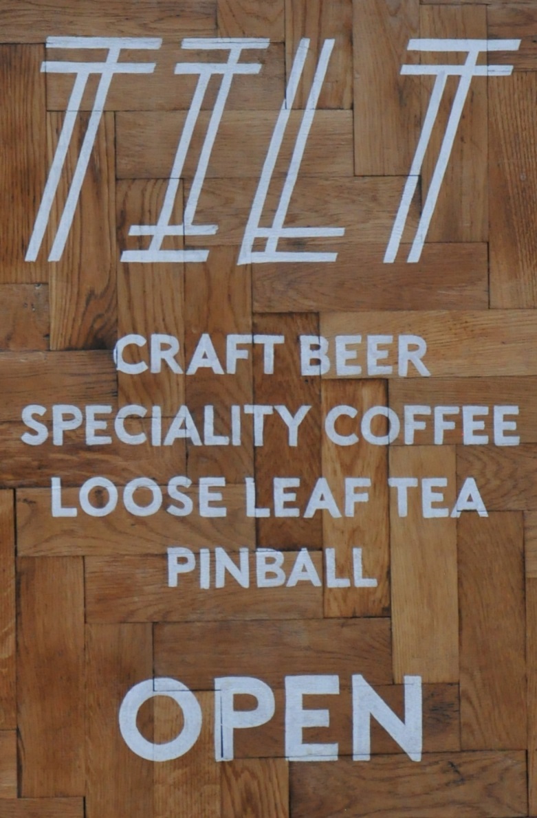 Thumbnail – Tilt (DSC_4511t) Published January 21, 2016 at 781 × 1190 in Tilt The Tilt A-board, proudly displaying Tilt’s credentials: craft beer, speciality coffee, loose-leaf tea and pinball. Naturally.