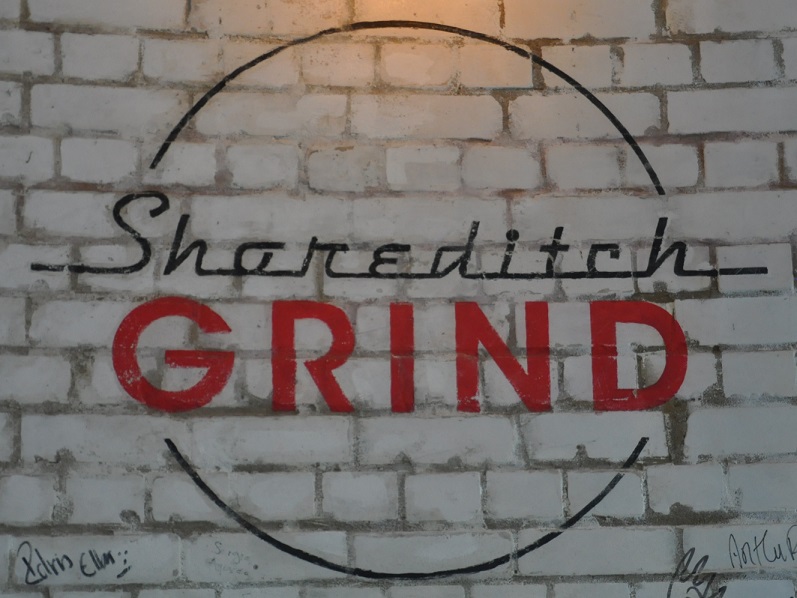 Thumbnail – Shoreditch Grind (DSC_9042) Published April 25, 2016 at 797 × 598 in Shoreditch Grind The Shoreditch Grind logo, written on the wall of Shoreditch Grind.