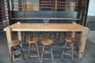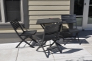 The lounge is spacious, with wonderfully-high ceilings and plenty of south-facing windows. There’s a concrete floor, with white walls and ceiling, and although it sounds rather stark, the reality’s much warmer and welcoming. Everything’s arranged around a large, eight-person communal table, running lengthwise in the centre of the room. Behind that, between the door to the lobby and the bottom of the ramp, is a long, nine-seat bar which looks (through the meshed-steel shutters) into the lobby itself. On the other side, a six-person bar straddles one of the windows, while the other is occupied by a generous corner sofa with a massive coffee table. Finally, on the left-hand wall next to the lobby door, is an enclosed fire; cosy, I’m sure, in the winter, but rather superfluous on the summer’s day I was there! Finally, there’s the option of sitting outside on the busy (and steeply-sloping) road, a pair of tables flanking the double-doors.