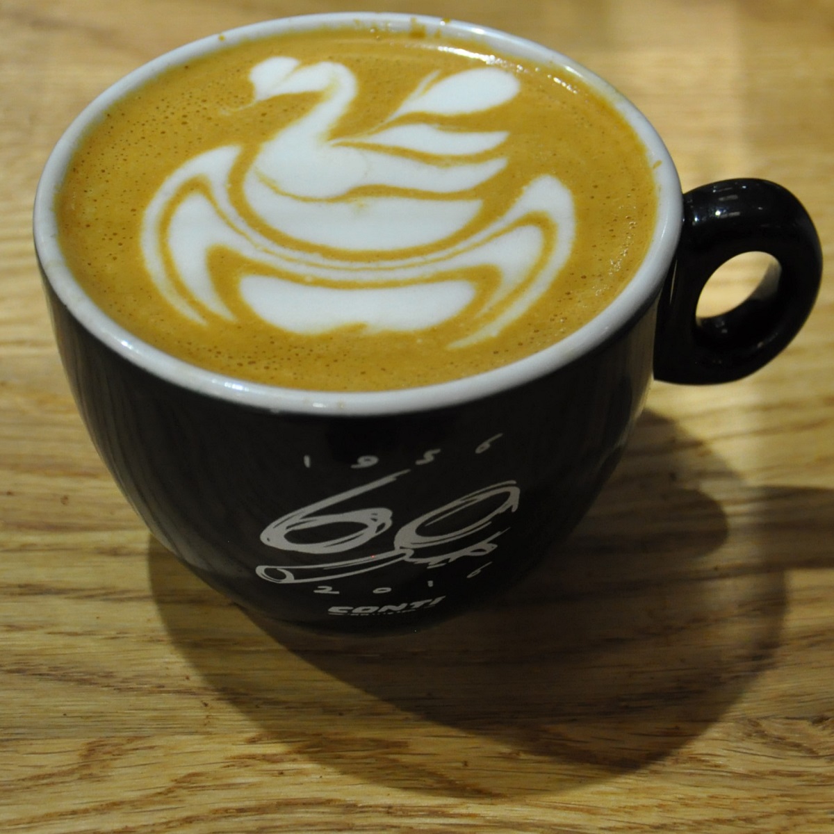 A beautiful flat white, with latte art by Dhan Tamang, the reigning UK Latte Art Champion, made at the World of Coffee 2016 using the Conti Espresso 60th Anniversary espresso machine.