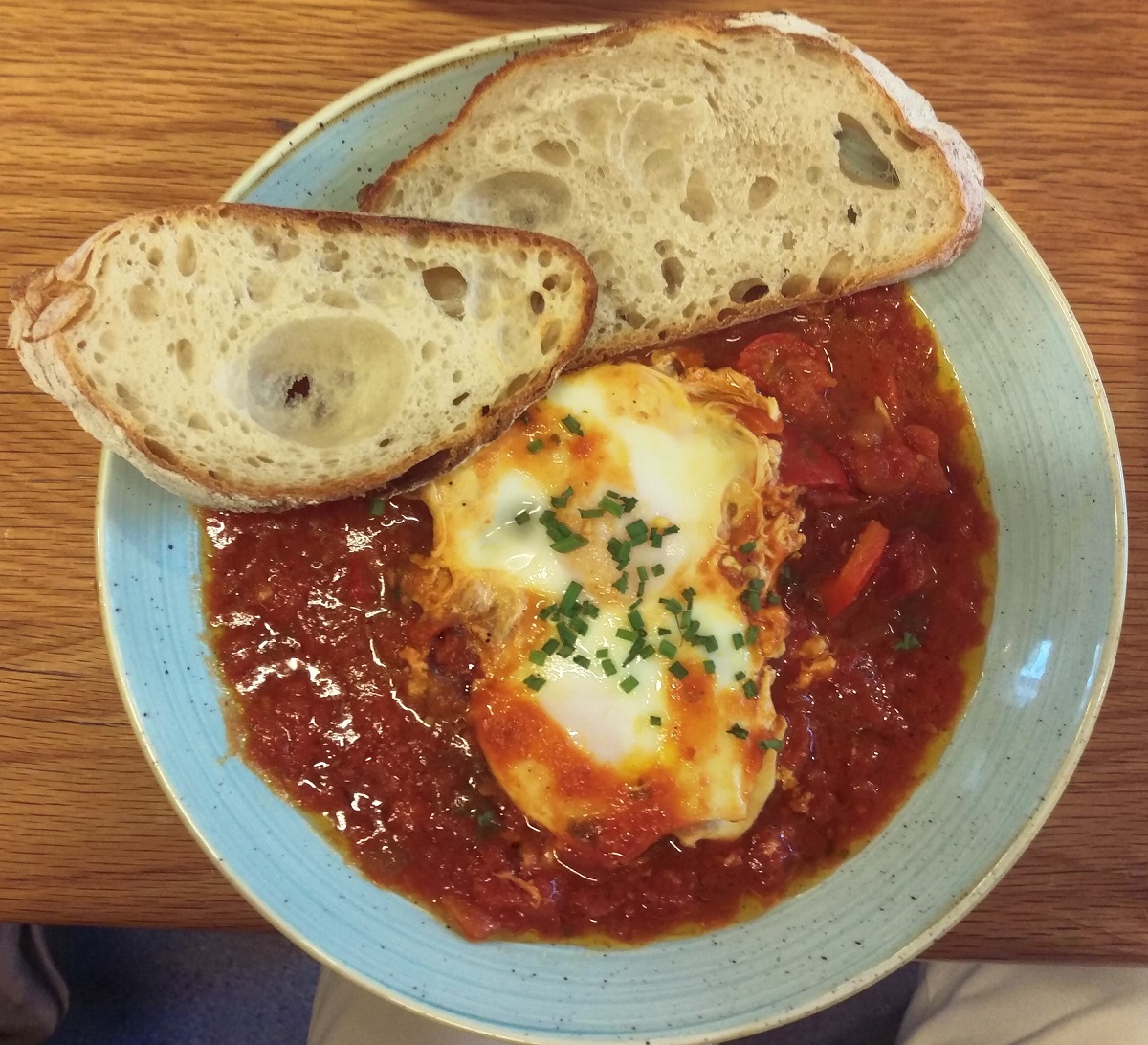 Thumbnail – Brunch at Beany Green (20160327_125726t) Published July 22, 2016 at 1200 × 1092 in Brunch at Beany Green, Paddington Brunch at Beany Green (Liverpool Street) – Shakshouka (Baked Eggs) and Sour Dough Toast