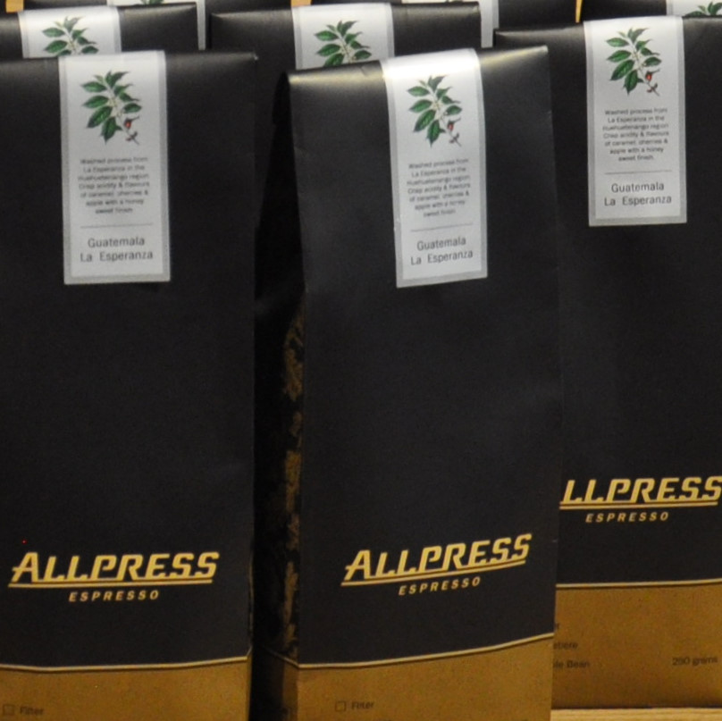 Thumbnail – Allpress Espresso (DSC_1949t) Published January 28, 2017 at 808 × 807 in Meet the Roaster: Allpress Espresso Bags of Allpress Espresso’s Guatemala La Espreanza for sale at the roastery.