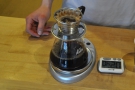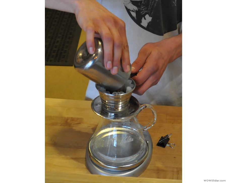 This is a neat arrangement, with the bar projecting from the counter-top, solving the perennial problem of where to put your legs. There’s a pair of bar stools here and they provide the ideal vantage point to watch the pour-overs, which are made directly in front of you. You also get a pretty good view of the business-end of the espresso machine, a two-group La Marzocco, which is towards the back of the counter on the left. No prizes for guessing where I sat!