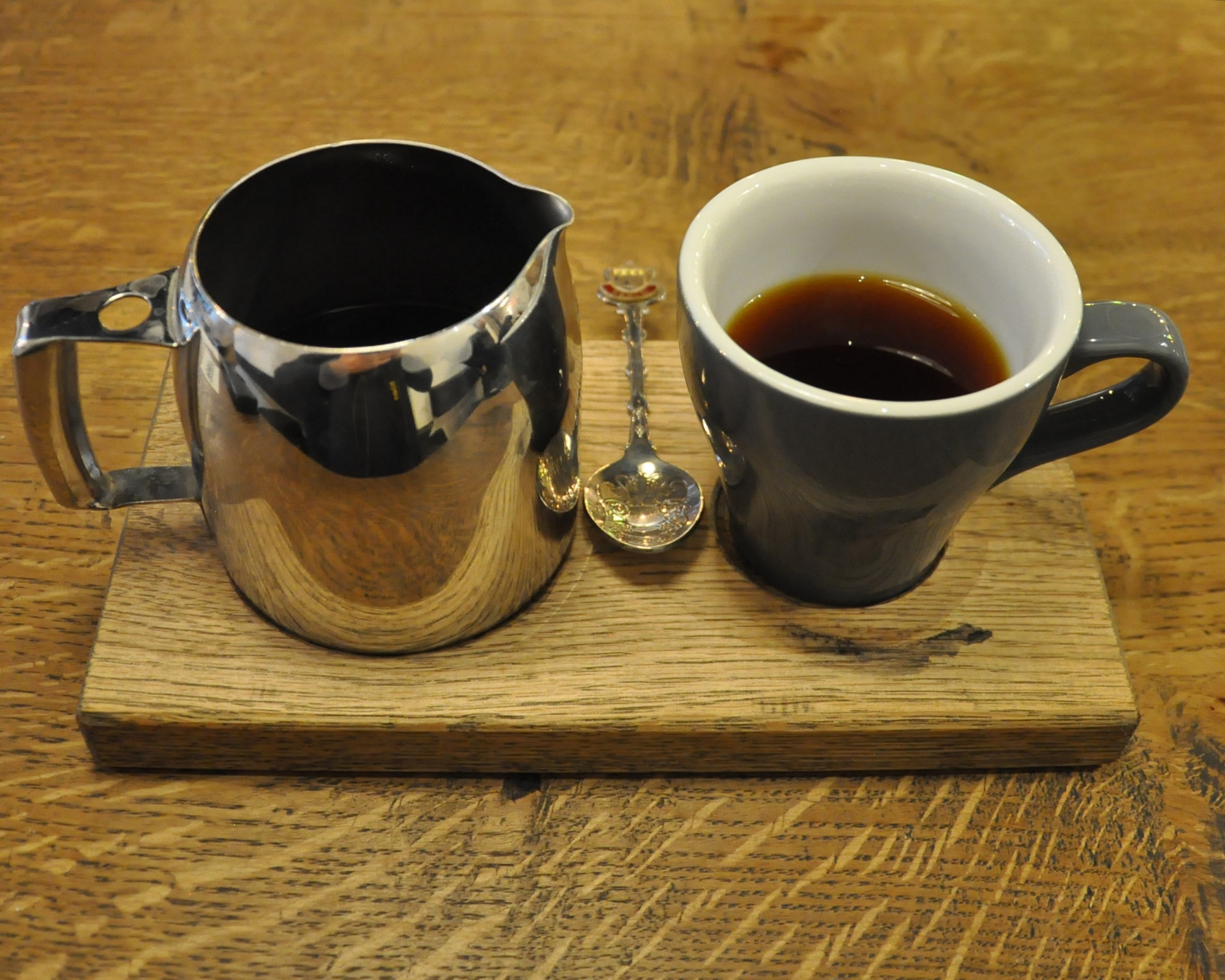 Thumbnail – TAP Russell Square (DSC_9207t) Published November 23, 2017 at 2000 × 1600 in TAP, Russell Square A beautifully-presented filter coffee at TAP, Russell Square, served on a wooden tray with the coffee in a metal jug and a tulip cup on the side.