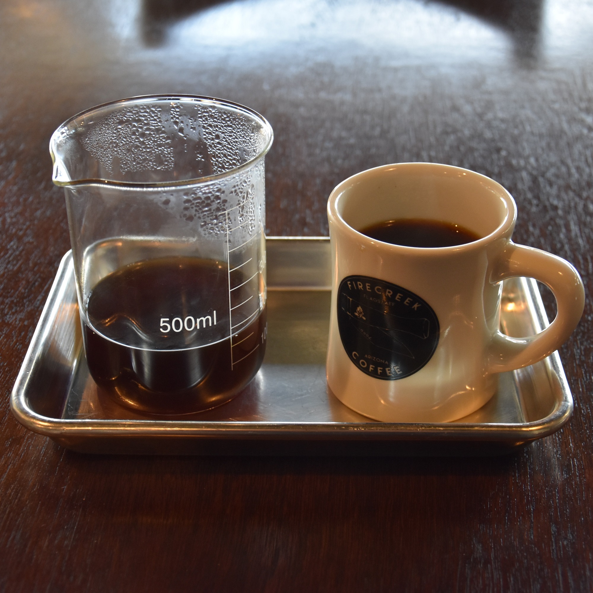Thumbnail – 111 Roasting Works (DSC_0109t) Published February 8, 2018 at 2000 × 2000 in 111 Roasting Works – Tasting Room My Colombian Los Naranjos through the V60, served in a carafe, mug on the side, at 111 Roasting Works.