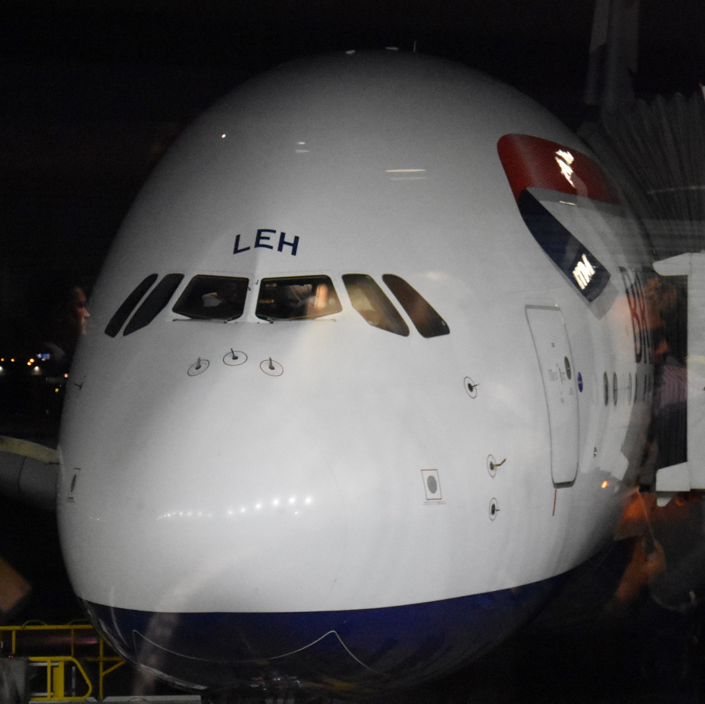 Thumbnail – Flying First Class From Chicago (DSC_9312) Published October 6, 2018 at 2356 × 2355 in Brian’s Travel Spot: Flying First Class From Chicago The nose of my British Airways Airbus A380-800 on the stand at Chicago’s O’Hare Airport, waiting to fly me back to London.