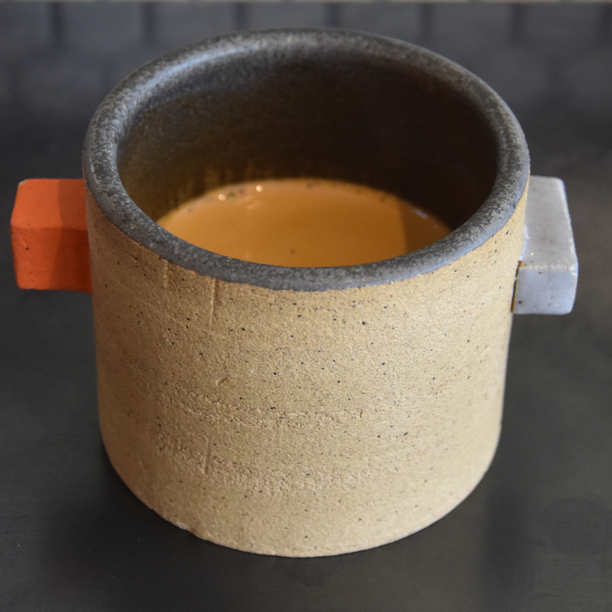 My espresso at Kream Coffee in Phoenix, from my visit in 2018. It was served in a gorgeous, earthenware cup with little plugs for handles on the sides.