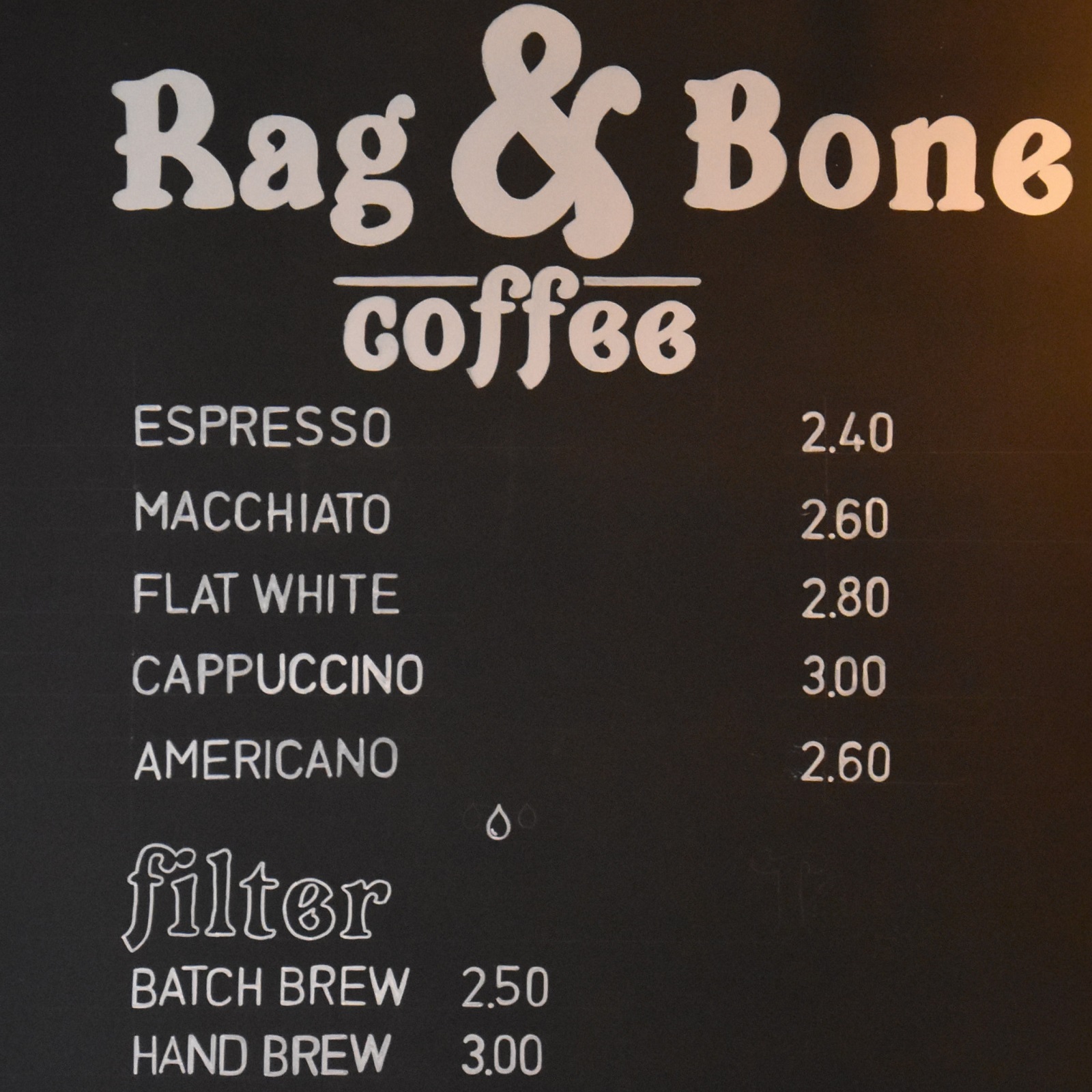 Thumbnail – Rag & Bone Coffee at Sharps (DSC_1464t) Published February 27, 2019 at 1600 × 1600 in Rag & Bone Coffee at Sharps The menu board from Rag & Bone Coffee at Sharps Coffee Bar in London.