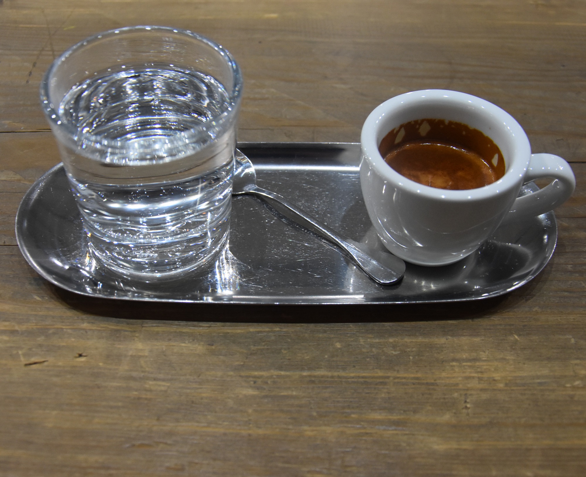 Thumbnail – Undefine (DSC_2936t) Published March 7, 2019 at 2000 × 1630 in UNDEF/NE My espresso, plus a glass of water, beautifully-presented on a metal tray, at Shanghai’s UNDEF/NE.