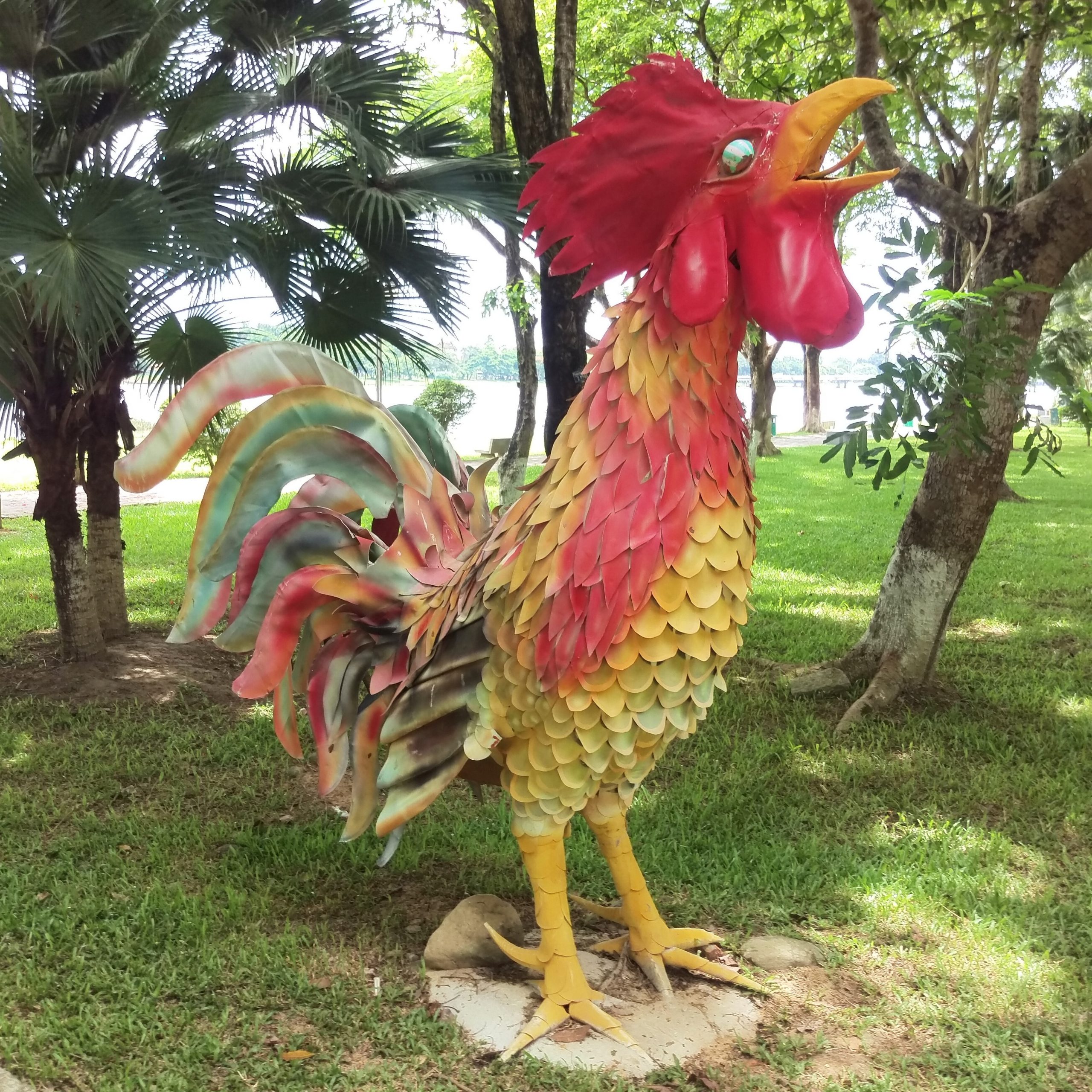 Thumbnail – Hue (20170620_113519t) Published June 21, 2020 at 2560 × 2560 in Brian’s Travel Spot: Huế to Hanoi The things you find in Hue… A giant statue of a cockerel on the banks of the Perfume River.