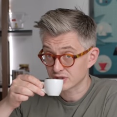 Thumbnail – James Hoffmann Videos Published November 28, 2020 at 240 × 240 in James Hoffmann’s YouTube Channel James Hoffmann, trying an espresso he’s just pulled on a La Pavoni Europiccola manual lever espresso machine.
