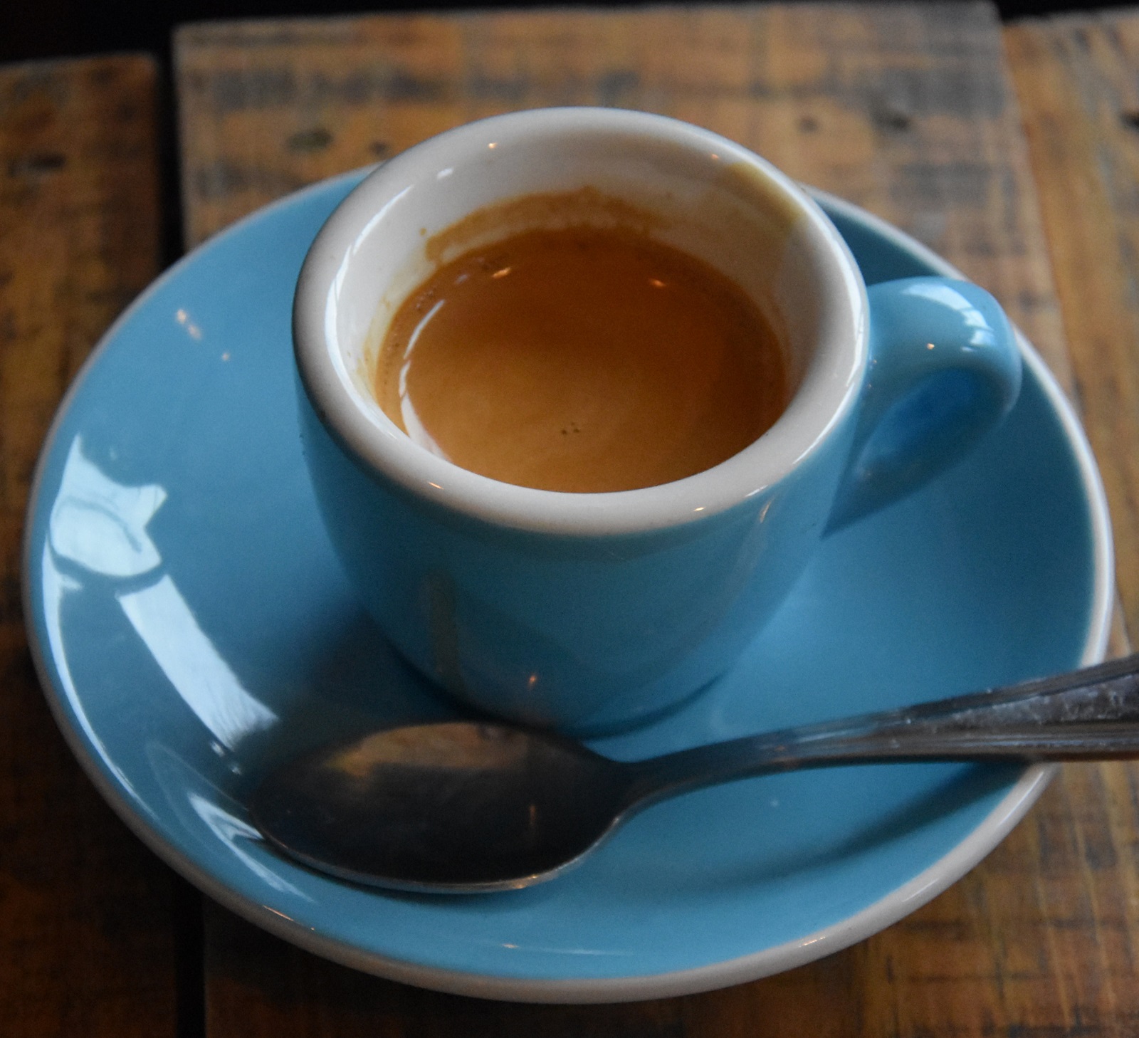 Thumbnail – Frontside Coffee Roasters (DSC_0180t) Published December 16, 2021 at 1600 × 1458 in Frontside Coffee Roasters An espresso, made with a naturally-processed Ethiopia Sidamo, and served in a classic blue cup at Frontside Coffee Roasters.