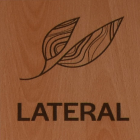 Thumbnail – Lateral (DSC_0952t) Published March 17, 2022 at 463 × 463 in Lateral The Lateral logo, a line drawing of two leaves, with the word “LATERAL” below, burnt into wood.