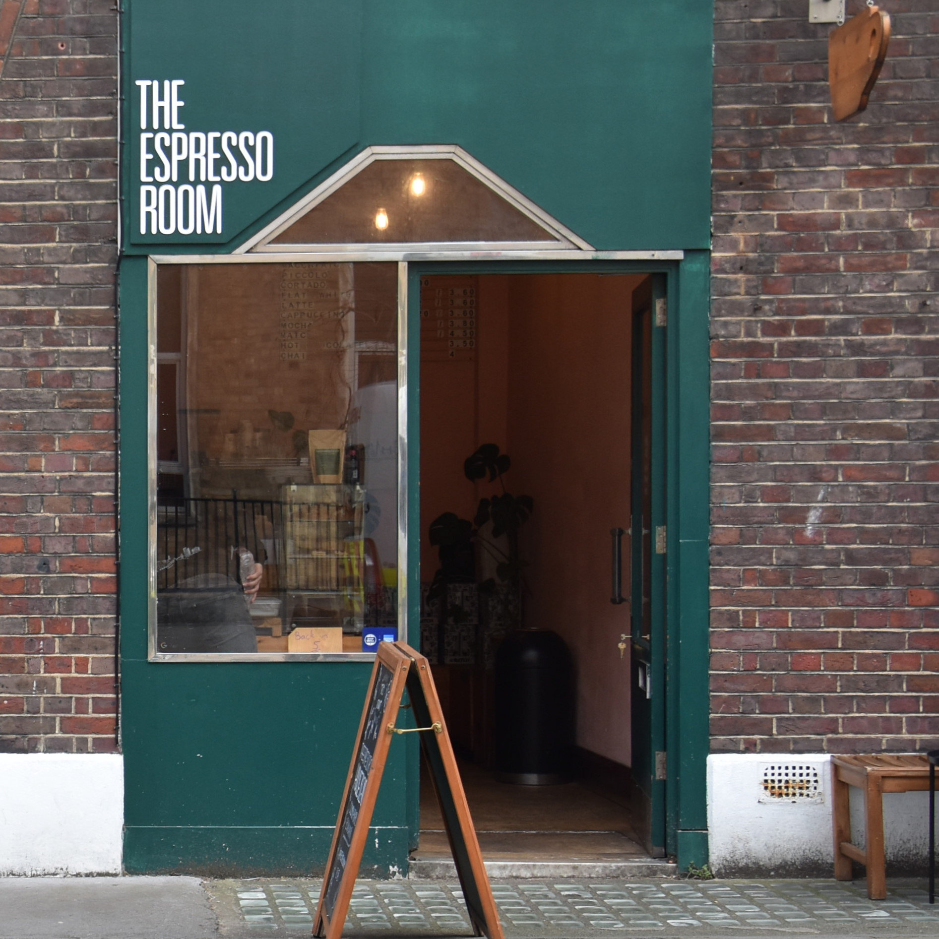 Thumbnail – The Espresso Room (DSC_0771) Published March 23, 2022 at 1893 × 1893 in The Espresso Room, Great Ormond Street The front of The Espresso Room, its striking green façade comprising of a single glass-paned door, with a window to the left.