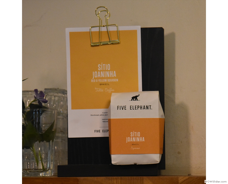 Having eaten at 19grams, I was in the mood for coffee and cake, so I’d definitely come to the right place. Although I’d had Five Elephant coffee a few times in the UK, this was the first time since London Coffee Festival in 2019. I liked the look of the naturally-processed Sitio Joaninha from Brazil, that was on espresso, so I ordered that, which once again was served in an over-sized cup. This was excellent, with a fruity hit on the first sip, after which it became a little more subdued.