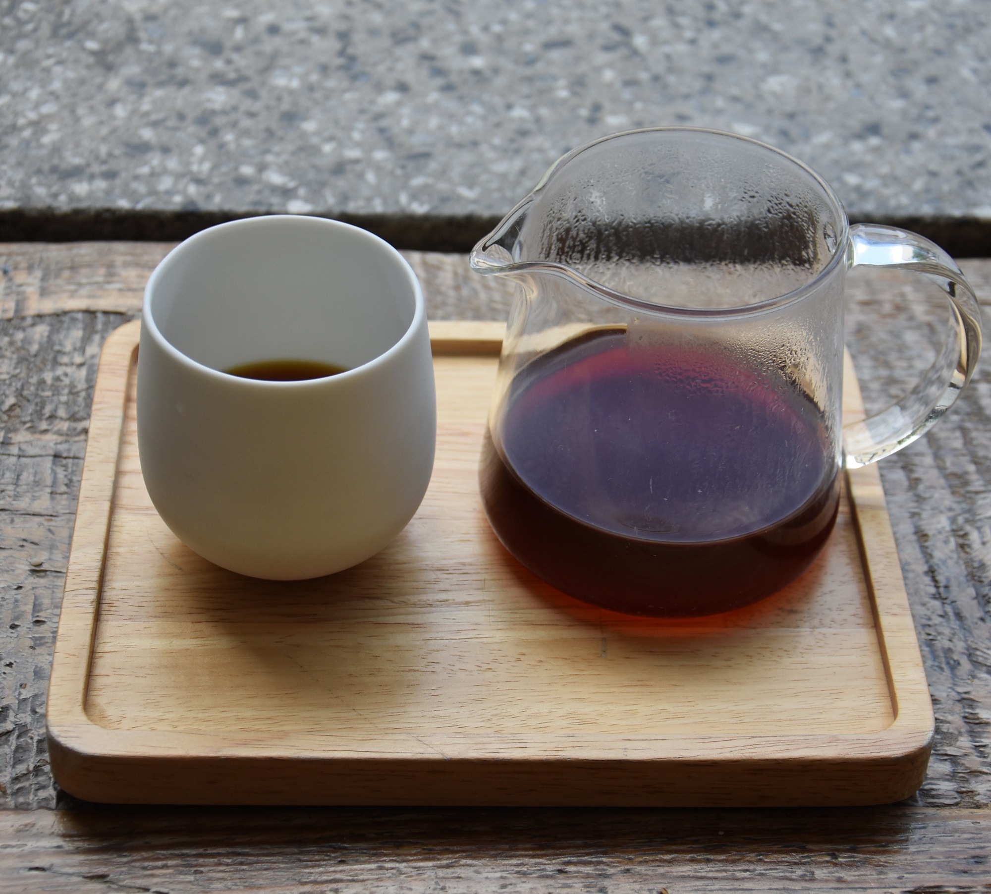 Thumbnail – The Barn Schönhauser Allee (DSC_0503) Published May 18, 2022 at 2000 × 1804 in The Barn Schönhauser Allee A V60 of the Radiophare, a naturally-processed coffee from Indonesia, served in a carafe with a cup on the side, all presented on a wooden tray.