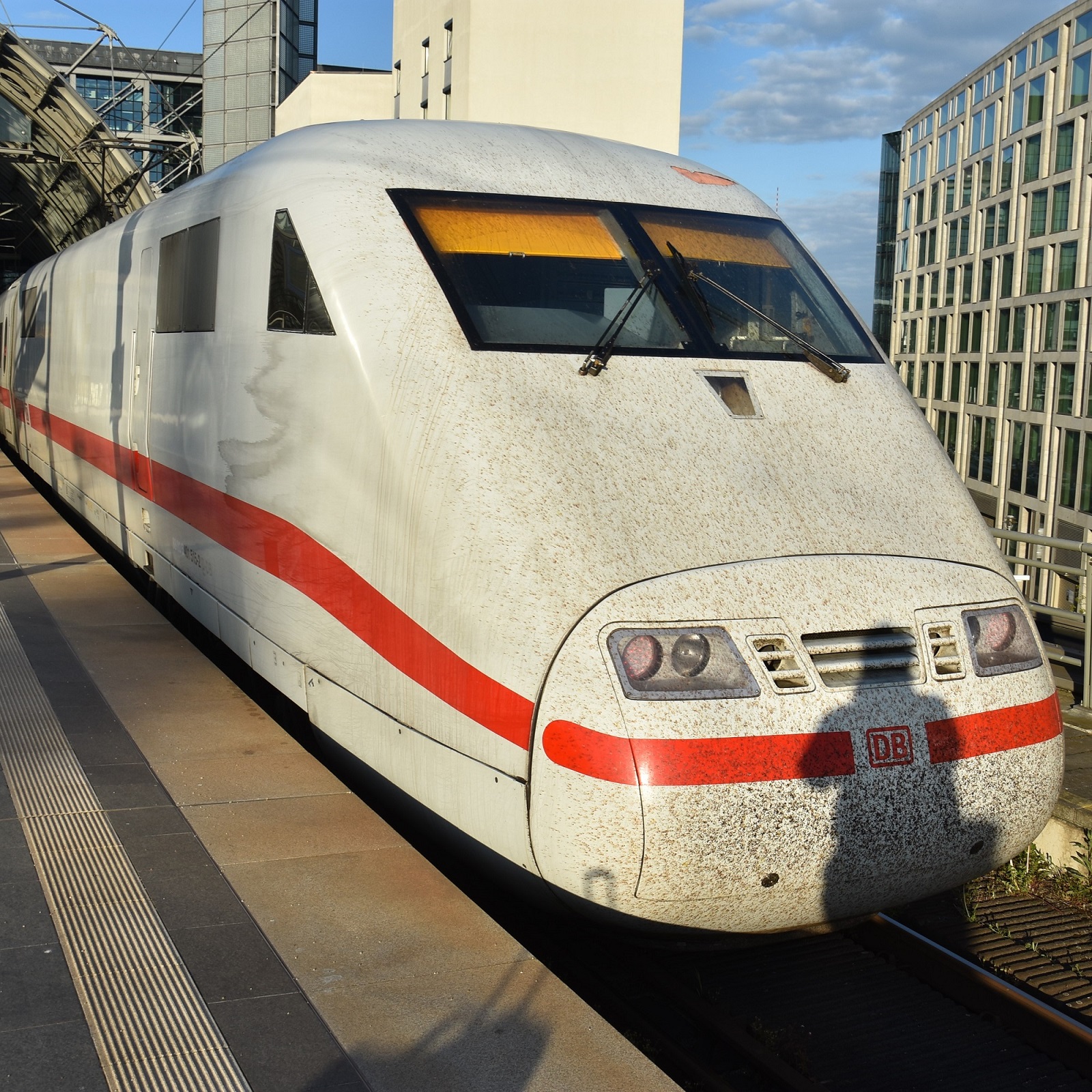 Thumbnail – UK to Berlin by Train IV (DSC_0643t) Published June 18, 2022 at 1600 × 1600 in Brian’s Travel Spot: UK to Berlin by Train, Part IV – ICE to Berlin The rear power car of my ICE 1, standing on the platform at Berlin Hauptbahnhof in the evening sun, having brought me all the way from Köln.