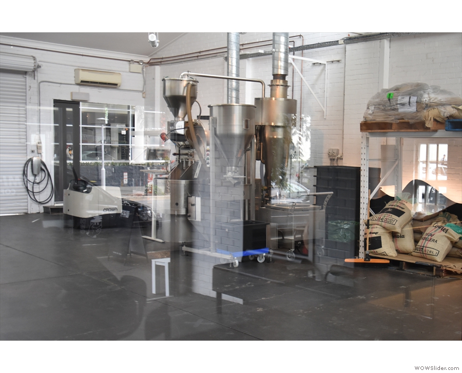 Stepping inside, you’re greeted by an interesting space. The bulk of the building is occupied by the roastery, which is at the back, while at the front is Foster & Black’s coffee bar. A short wall immediately to the right of the door splits the space in two, the two sides linked by the counter which runs along the back of the coffee bar, separated from the roastery by a wall of windows. Order at the counter before finding yourself a seat.