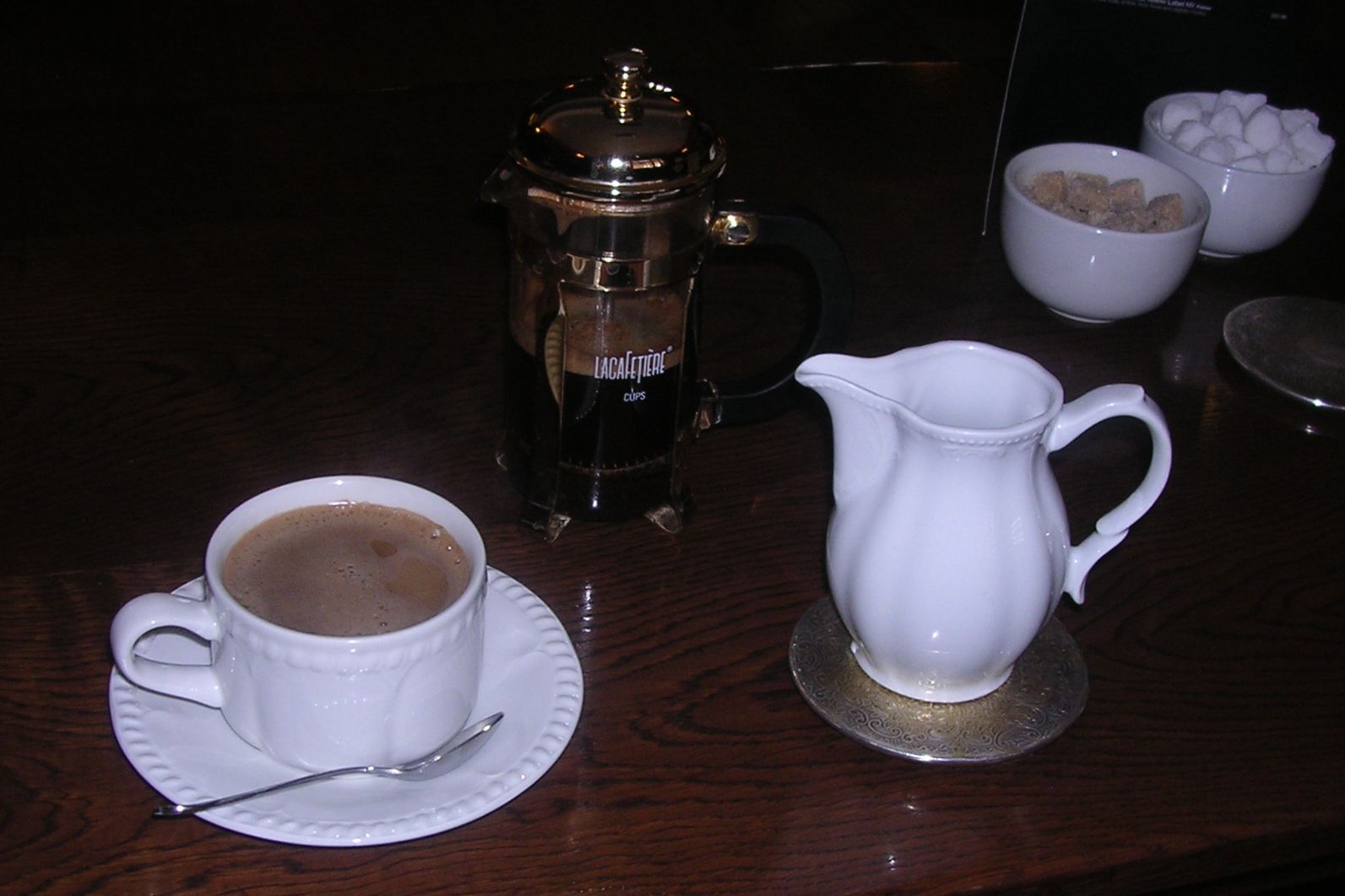 The Cafetiere and Coffee Published September 12, 2012 at 1593 × 1062 in About Coffee A freshly plunged cafetiere and cup of coffee from the Angel Hotel, Guildford, 2009