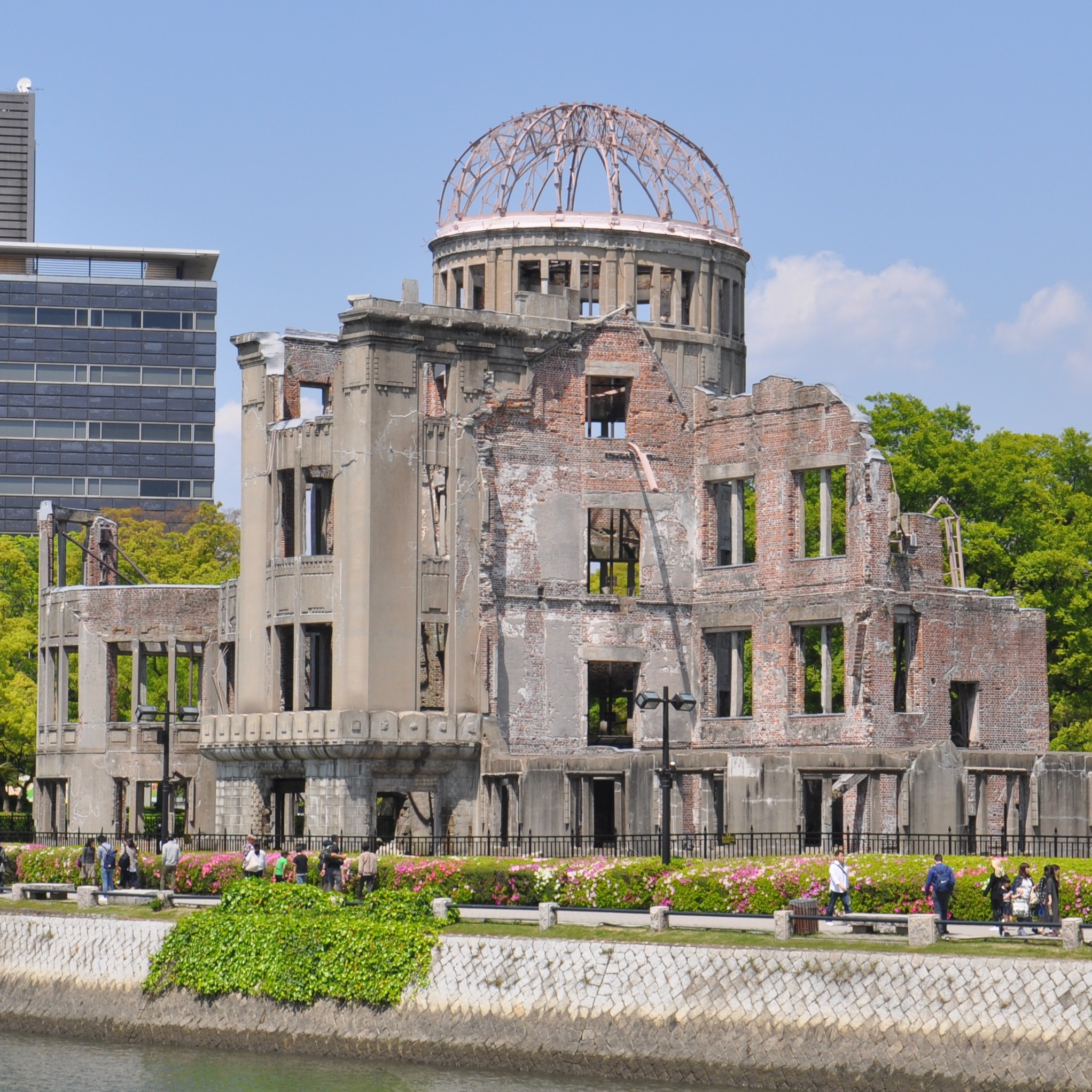 The Atomic Bomb Dome, also known as the Hiroshima Peace Memorial, is the remains of the Industrial Promotion Hall, destroyed by the first atomic bomb to be used in World War II, dropped on Hiroshima by the United States Army Air Forces from the Enola Gay in August 1945 .