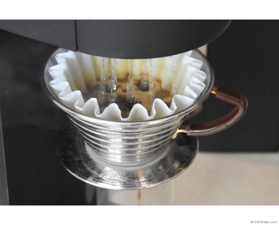 I tried the guest pour-over, the La Huella, a washed coffee from Nicaragua, roasted by Origin. Made using the Kalita Wave on the SP9, this was served in a carafe with a gorgeous pottery cup on the side. A lovely, clean coffee, it was very drinkable, maturing slightly as it cooled. I also had a taste of the cold brew (an Ethiopian) which was one of the best I’ve had in a long time, although still not enough to convert me away from my love of hot coffee!
